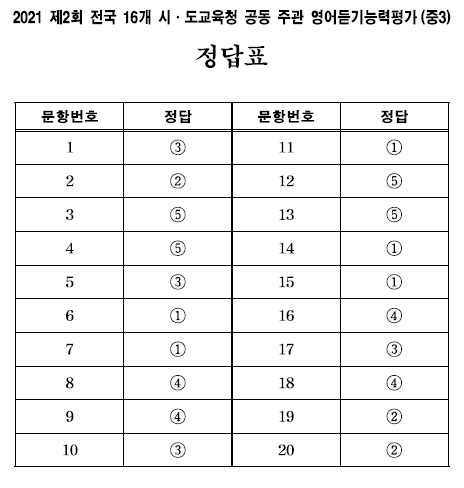 | 2021년 1회 중3 영어듣기평가 시도교육청 대본 및 정답 (0) | 2021.05.09 |
