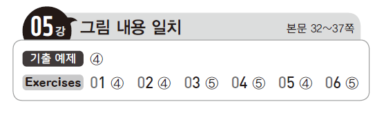2022년 수능특강 영어듣기 05강 그림 내용 일치 대본 및 정답 mp3