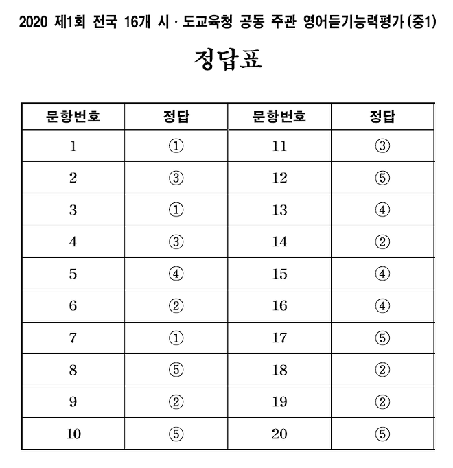 2020학년도 중2 제1회 시.도교육청 영어듣기능력평가